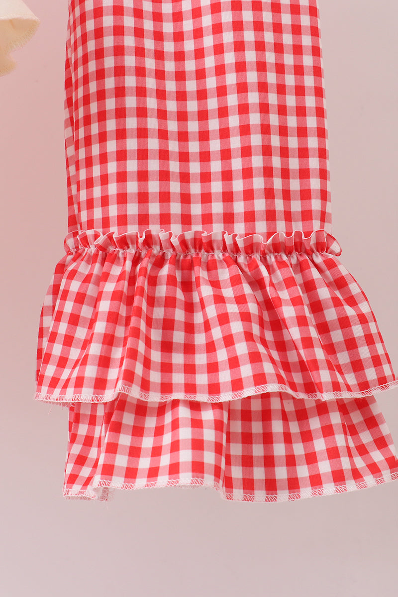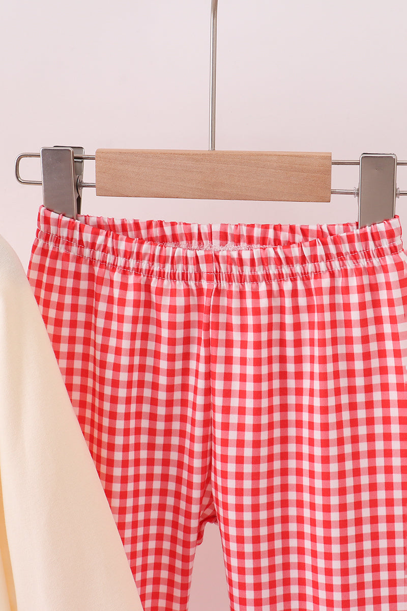 Beige reindeer sequin ruffle pants set