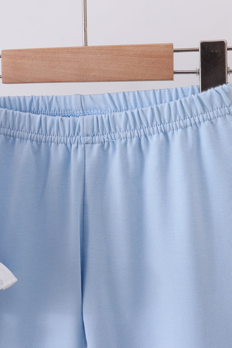 Blue bow floral smocked ruffle pants set