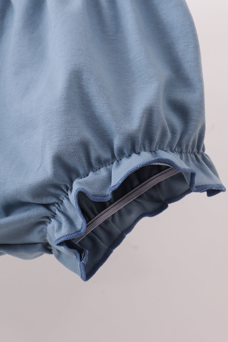 Blue floral blessed embroidery bloomer set
