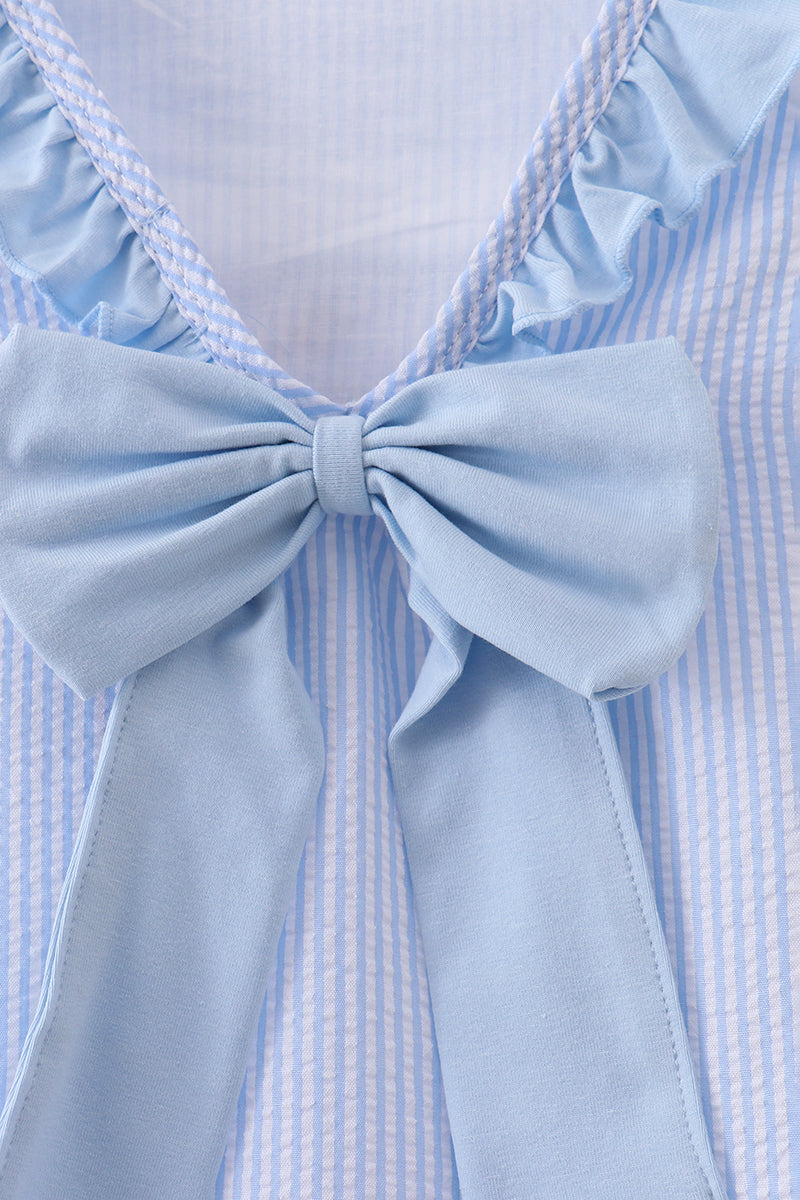 Blue nautical trio embroidery ruffle dress