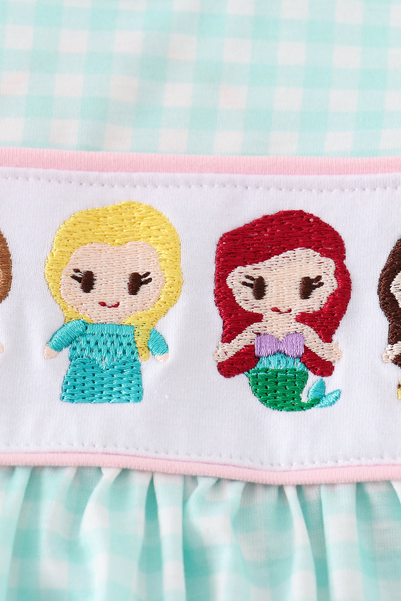 Be the belle of the ball in our blue princess embroidery gingham dress. Stand out from the crowd with this standout dress, featuring elegant princess embroidery details. Perfect for any special occasion, this dress will make you feel like royalty!
