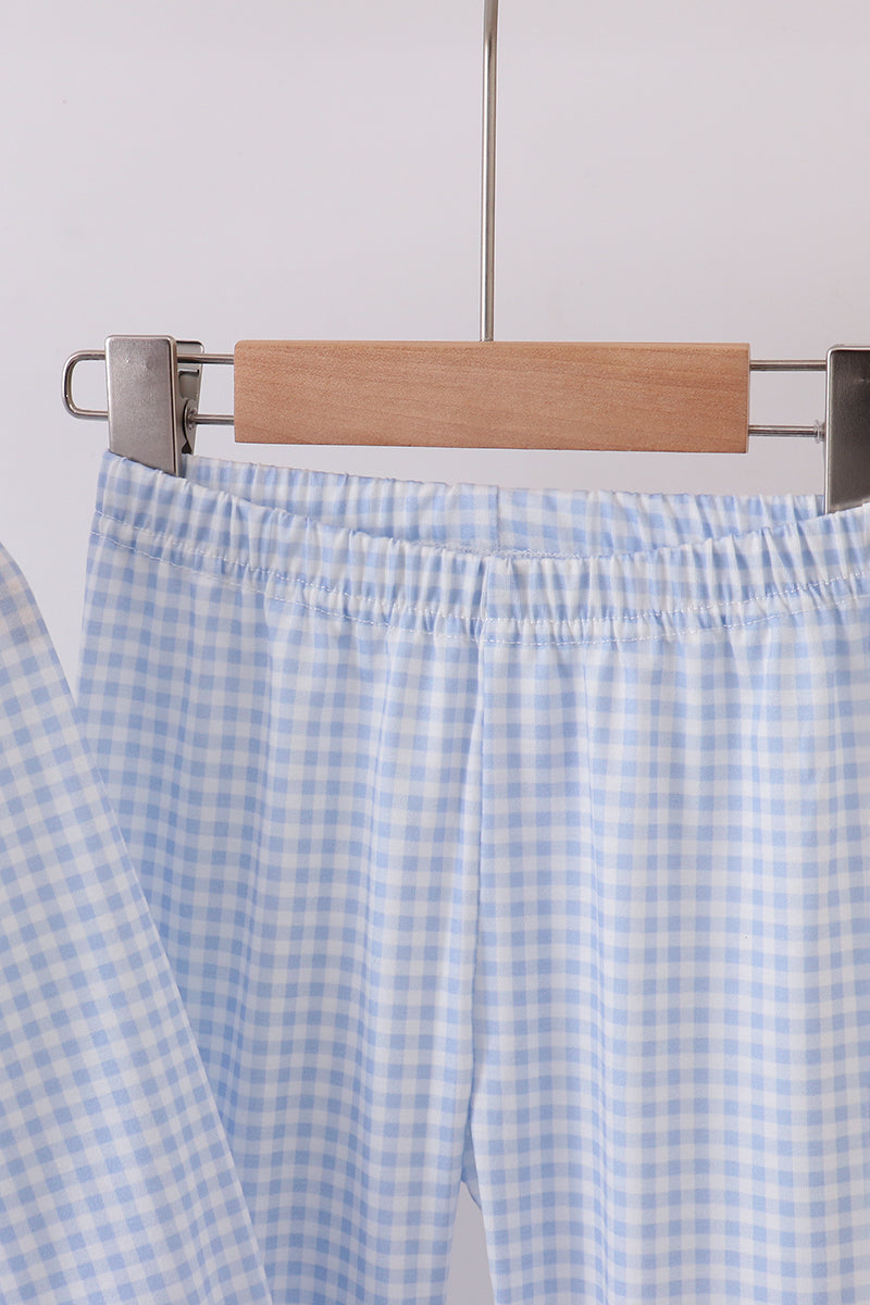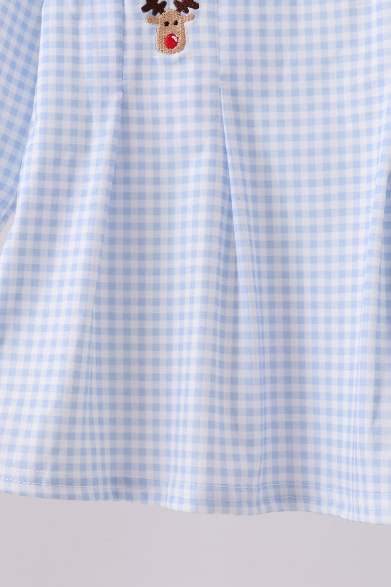 Get festive with this Blue Santa Claus Embroidery Ruffle Pants Set! Featuring charming embroidered Santa details and playful ruffles, it’s perfect for adding a cheerful touch to holiday celebrations. Comfortable and cute, this set brings joyful style to any festive occasion.