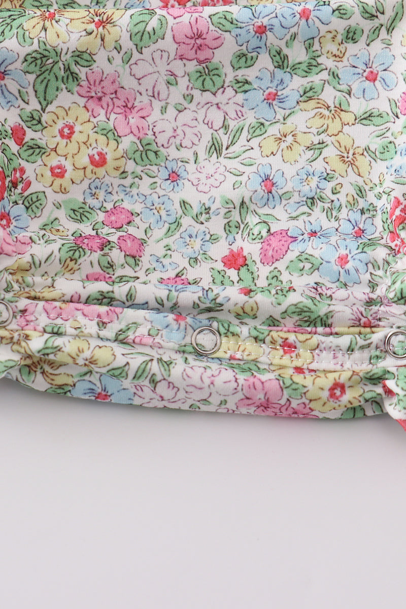 Floral print bunny embroidery smocked girl bubble