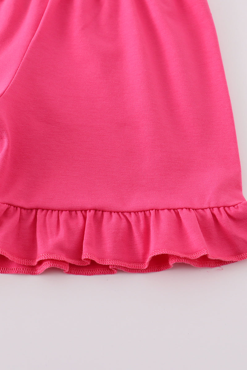 Get ready to make mom's heart bloom with this adorable embroidered girl set! Featuring a charming garden design and the words "I love MOM" in playful stitching, this set is sure to bring a smile to both mom and daughter's face. Perfect for special occasions or everyday wear.