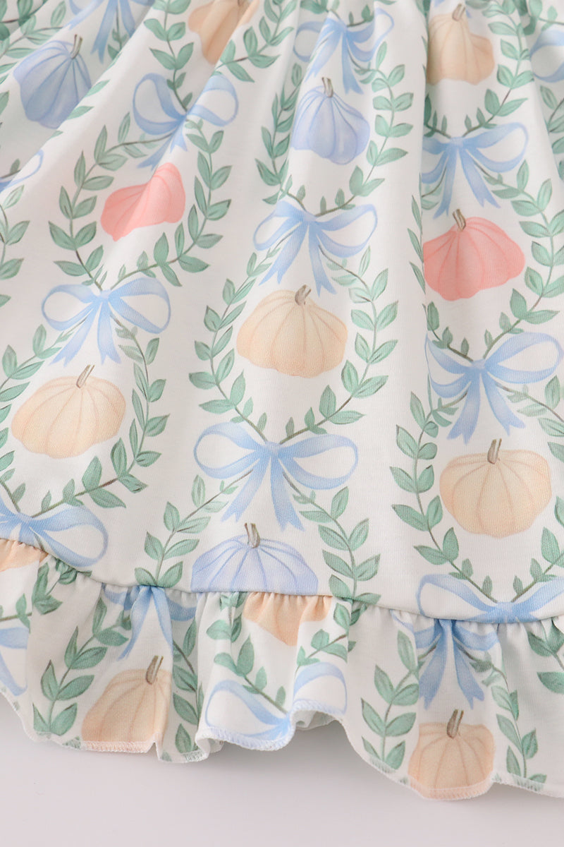 Green bow print ruffle pants set