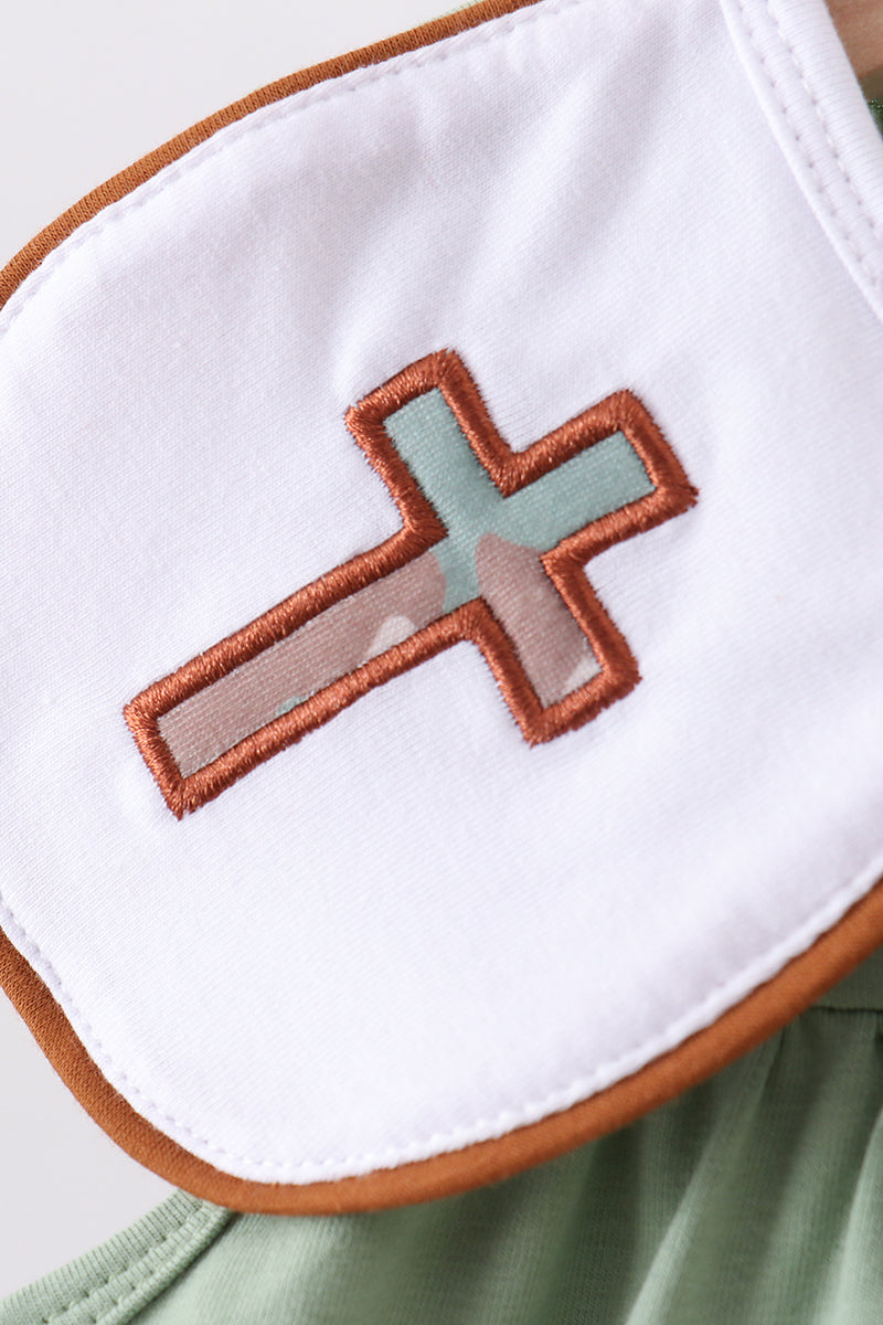 Green camoflage cross applique dress