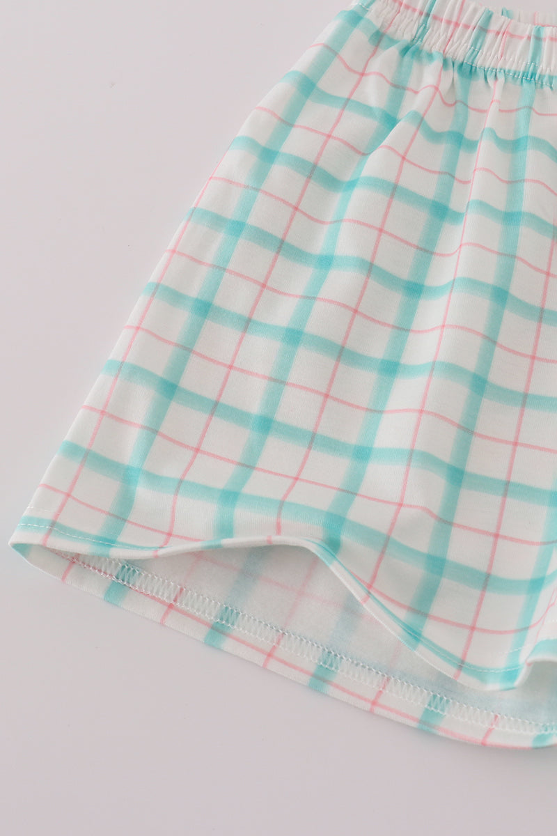 This playful green shorts set features charming starfish embroidery and a comfortable smocked waistband, perfect for sunny days and seaside adventures. Soft and breathable, it keeps your little one cool while adding a splash of fun to their wardrobe.