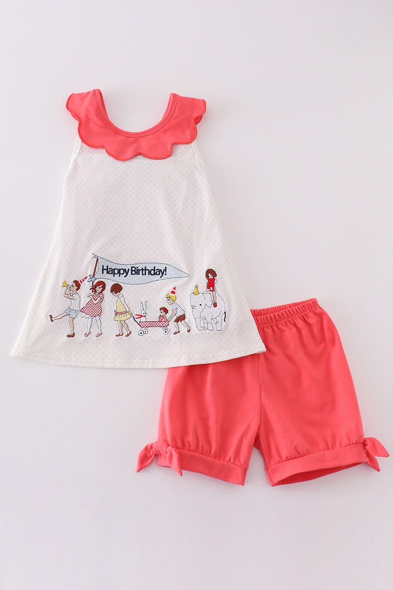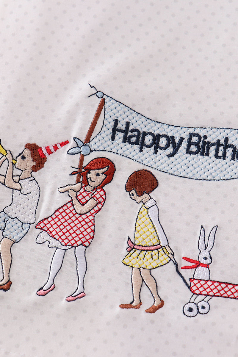Make her day with our Happy Birthday Embroidery Girl Set! This adorable set comes with everything she needs for a special birthday - a personalized embroidered shirt, a matching skirt, and a fun headband. She'll be the happiest birthday girl in town! (And the most stylish too!)