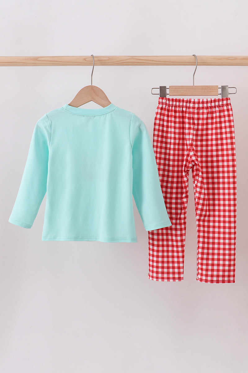 Dress your little one in festive fun with this Mint Gingerbread Applique Pants Set. Featuring soft, mint-colored fabric adorned with charming gingerbread appliques, this playful outfit brings holiday cheer to everyday comfort. Perfect for cozy days and joyful moments, it combines adorable style with easy wearability for your child's happiest celebrations.