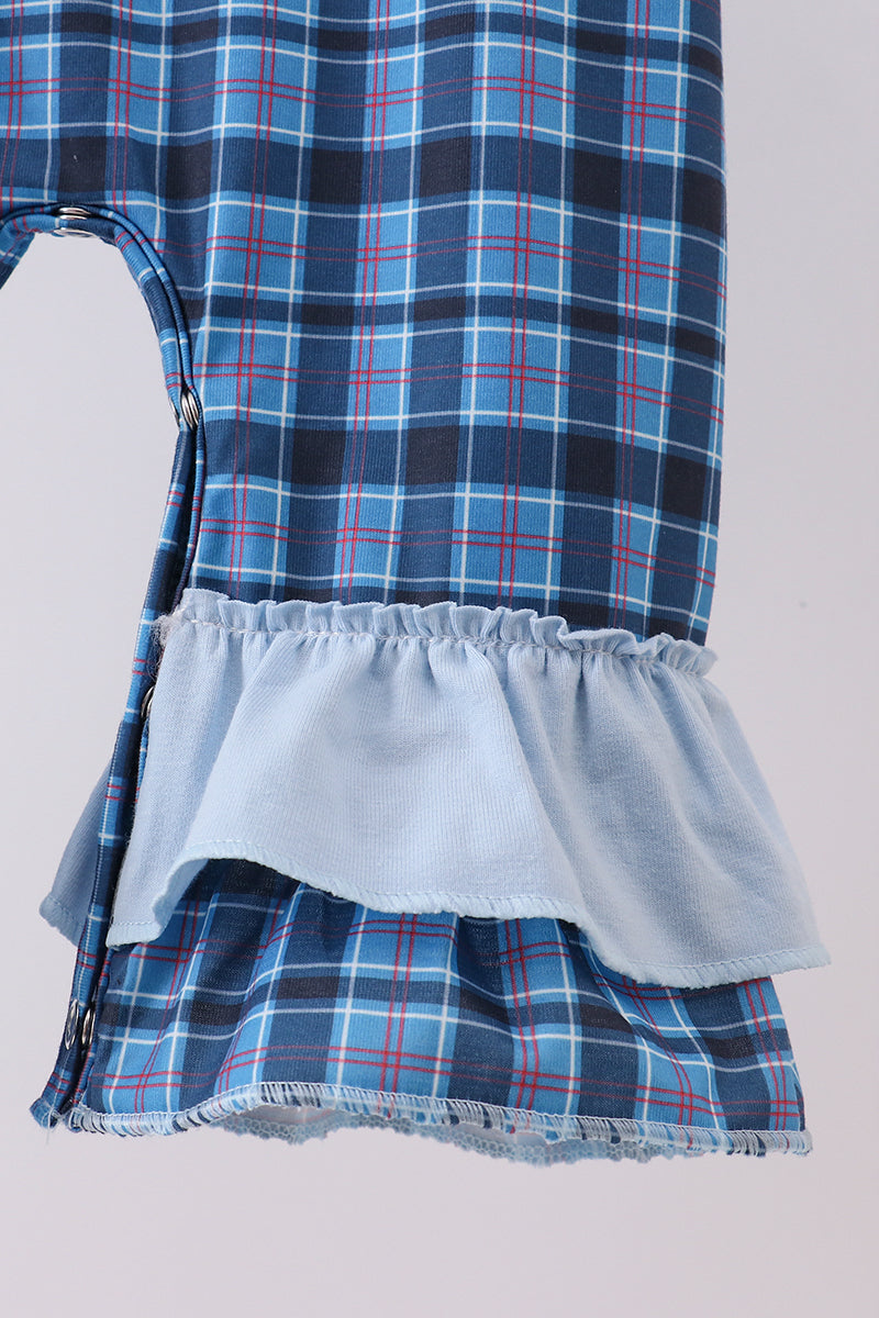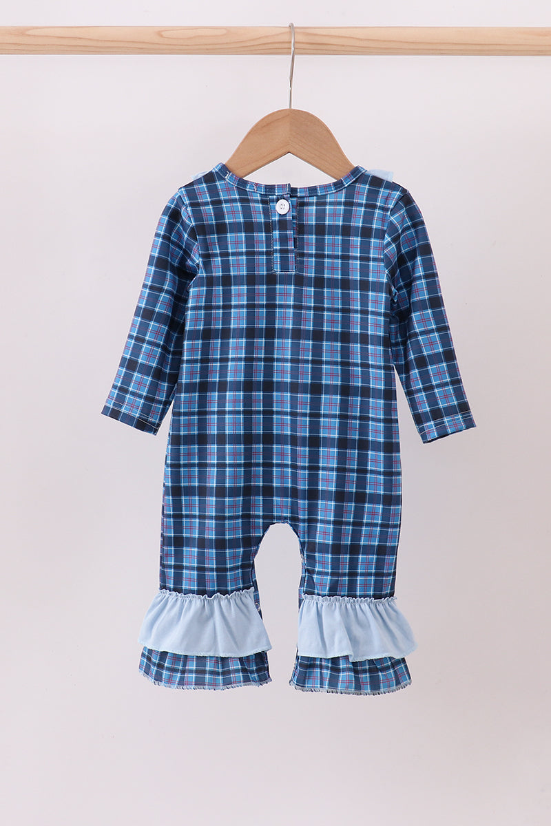 Navy nativity embroidery plaid ruffle romper