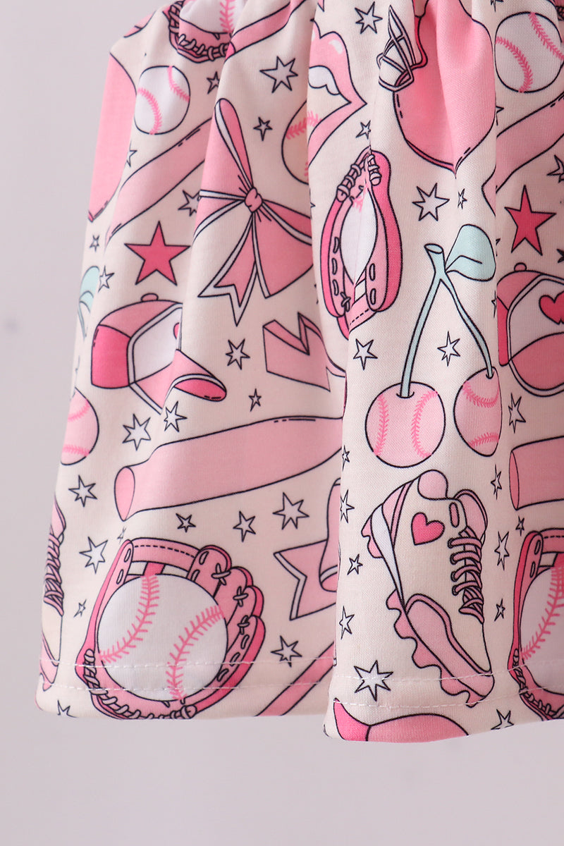 Pink baseball smocked ruffle bloomer set