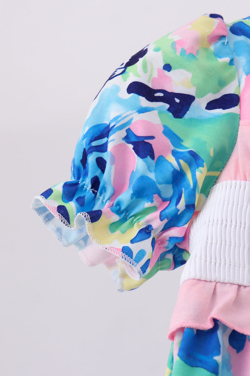Pink character smocked ruffle romper