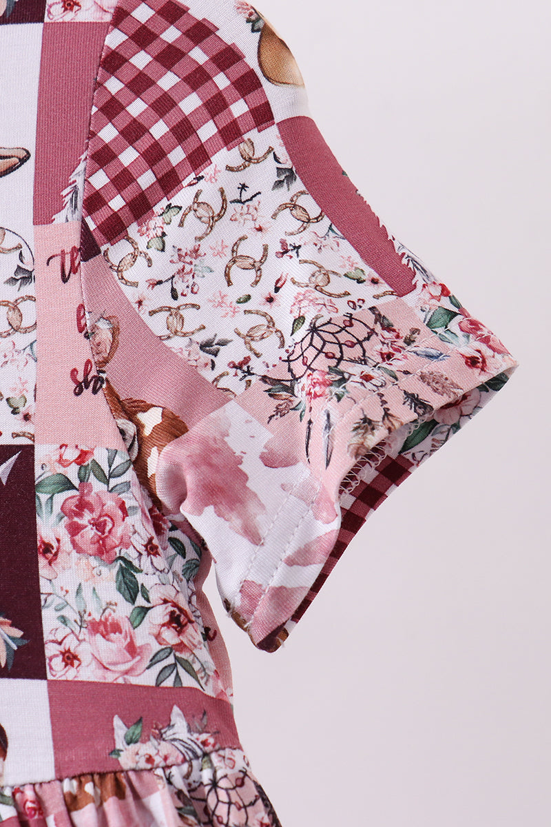 Pink checkered farm bamboo dress