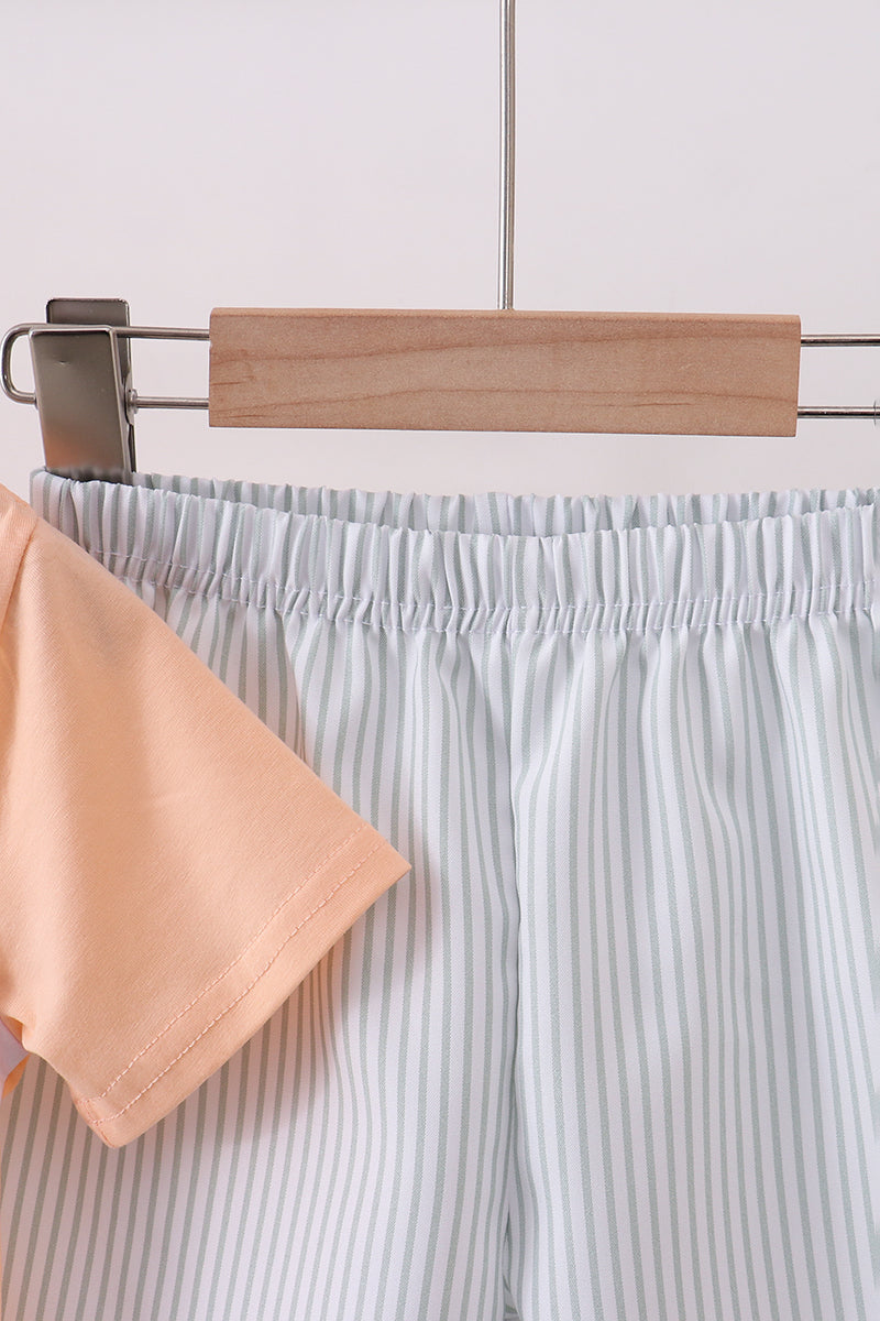 Celebrate your love with this charming shorts set featuring "I love my mom" embroidery. The soft pink fabric offers comfort and style, perfect for casual wear or meaningful gift-giving. The embroidered design adds a personal touch that makes a heartfelt statement. Ideal for family bonding moments or showing appreciation in everyday style.