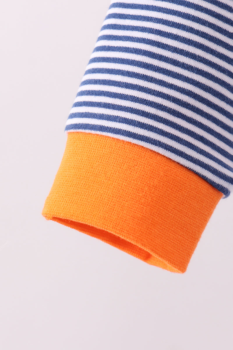 Premium Blue Auburn stripe tiger embroidery dress