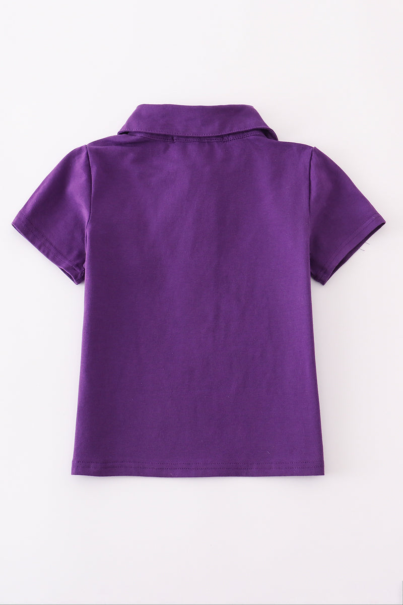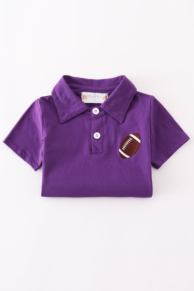 Score big with this vibrant purple polo shirt! Featuring eye-catching football embroidery, this shirt is sure to help your little guy look cool for any occasion. He'll be the MVP of the playground in no time!