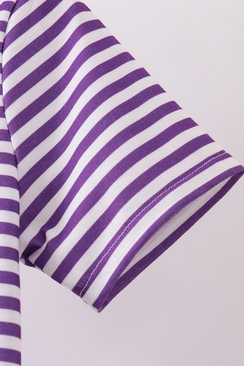 Show your Tiger pride in vibrant purple with this spirited LSU GEAUX applique top. The bold, eye-catching design celebrates your school spirit with playful flair, perfect for game days, casual outings, or whenever you want to rep your team. Comfortable and versatile, this top pairs effortlessly with jeans, shorts, or athletic wear for a look that's unmistakably LSU.