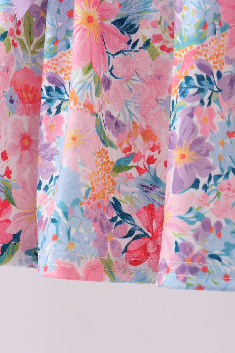 Adorable purple shorts set featuring a smocked bodice and charming ruffle details—perfect for little ones who love coordinated style. The soft, comfortable fit makes it ideal for playdates, family outings, or everyday wear. This sweet two-piece set combines fun fashion with practicality, giving your daughter that effortlessly cute look she'll love showing off.