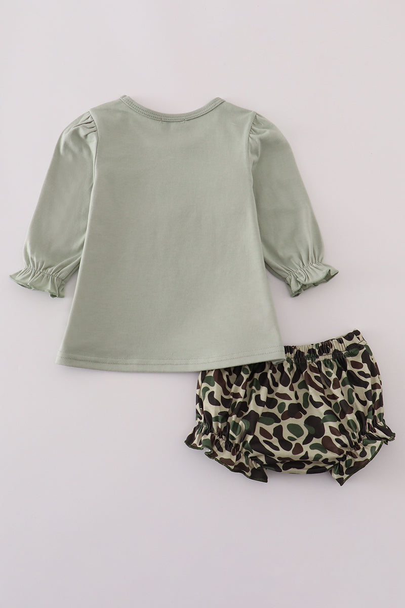 Sage camouflage turkey applique bloomer set