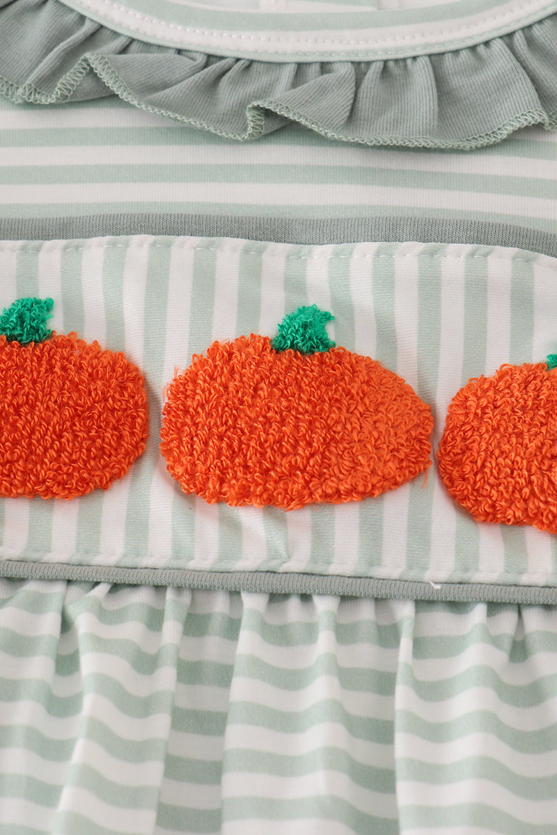 Sage stripe french knot ruffle dress