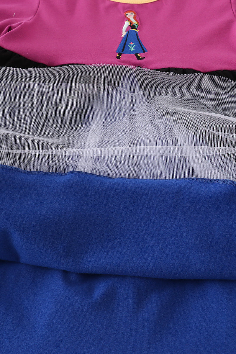 Sapphire blue princess embroidery ruffle dress