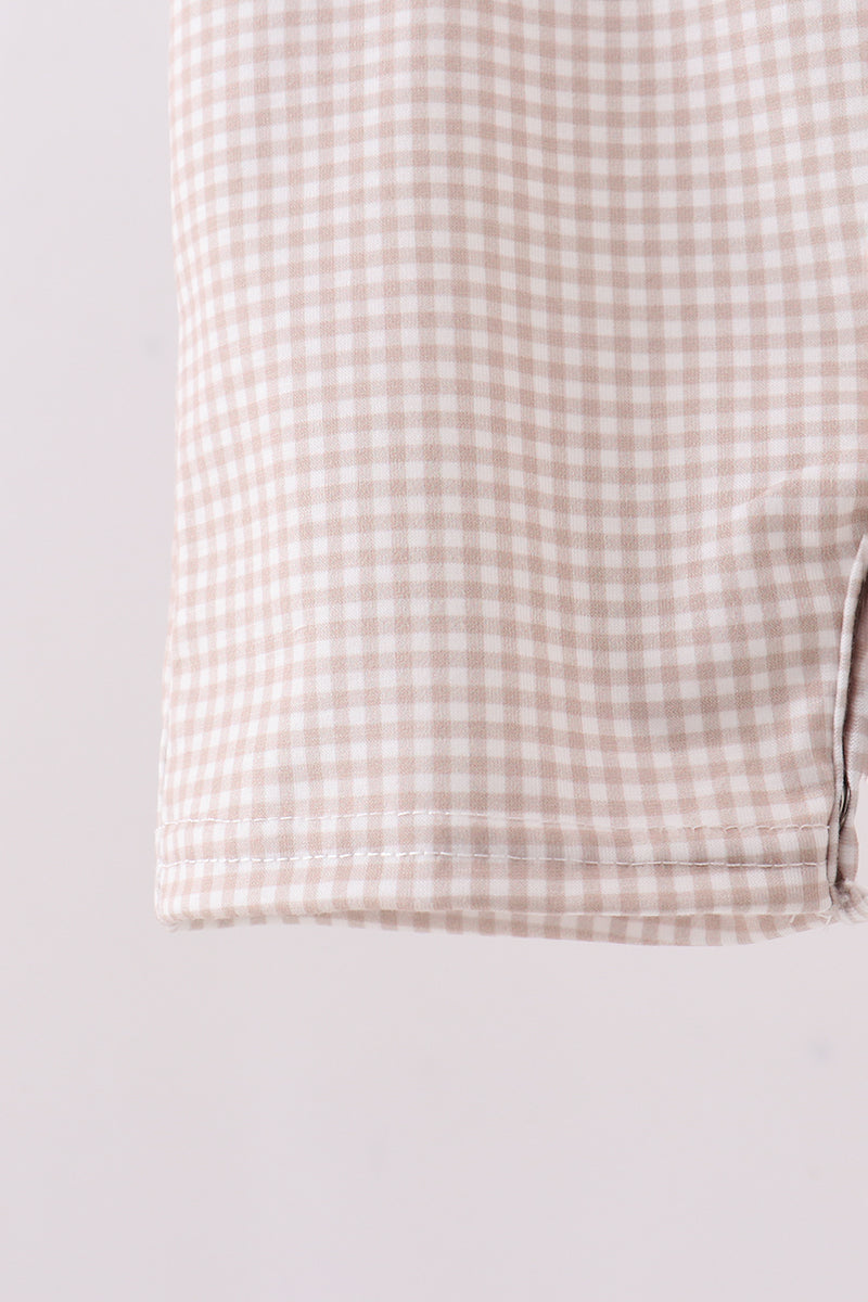 Playful style meets practical comfort in this charming gingham jonjon! Featuring adorable sports ball embroidery details, it's perfect for little athletes who love their games. The classic gingham pattern adds a timeless touch, while the relaxed fit keeps kids cool and comfortable all day long. Whether heading to practice or playtime, this jonjon celebrates active fun with personality and style.