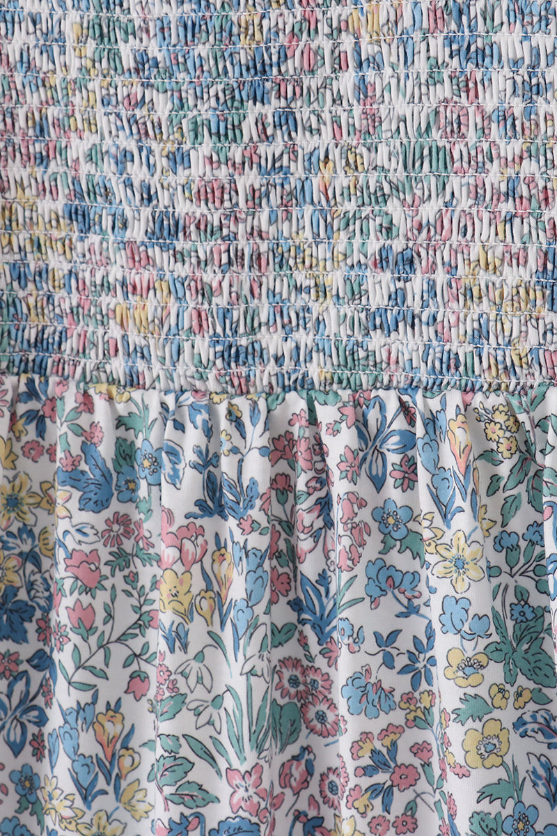 Vintage meadow print smocked mom dress